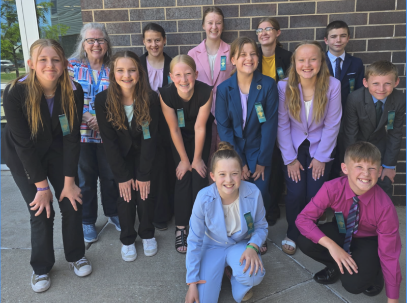 Three high school students and twelve middle school students represented Beresford at the National Speech and Debate Association (NSDA) tournament, held in Des Moines from June 16 to June 20, 2025. Coach Ann Tornberg, Ojala Bartlett, Abby Cahoon, Sophia Penn, and Raiden Hanner, Emma Martinson, Julia Kinney, Natalie Buum, Zooey Bartlett, Anna Andrews, Noah Peterson, Emma Cahoon and Sean Buum made the journey to the national tournament. |