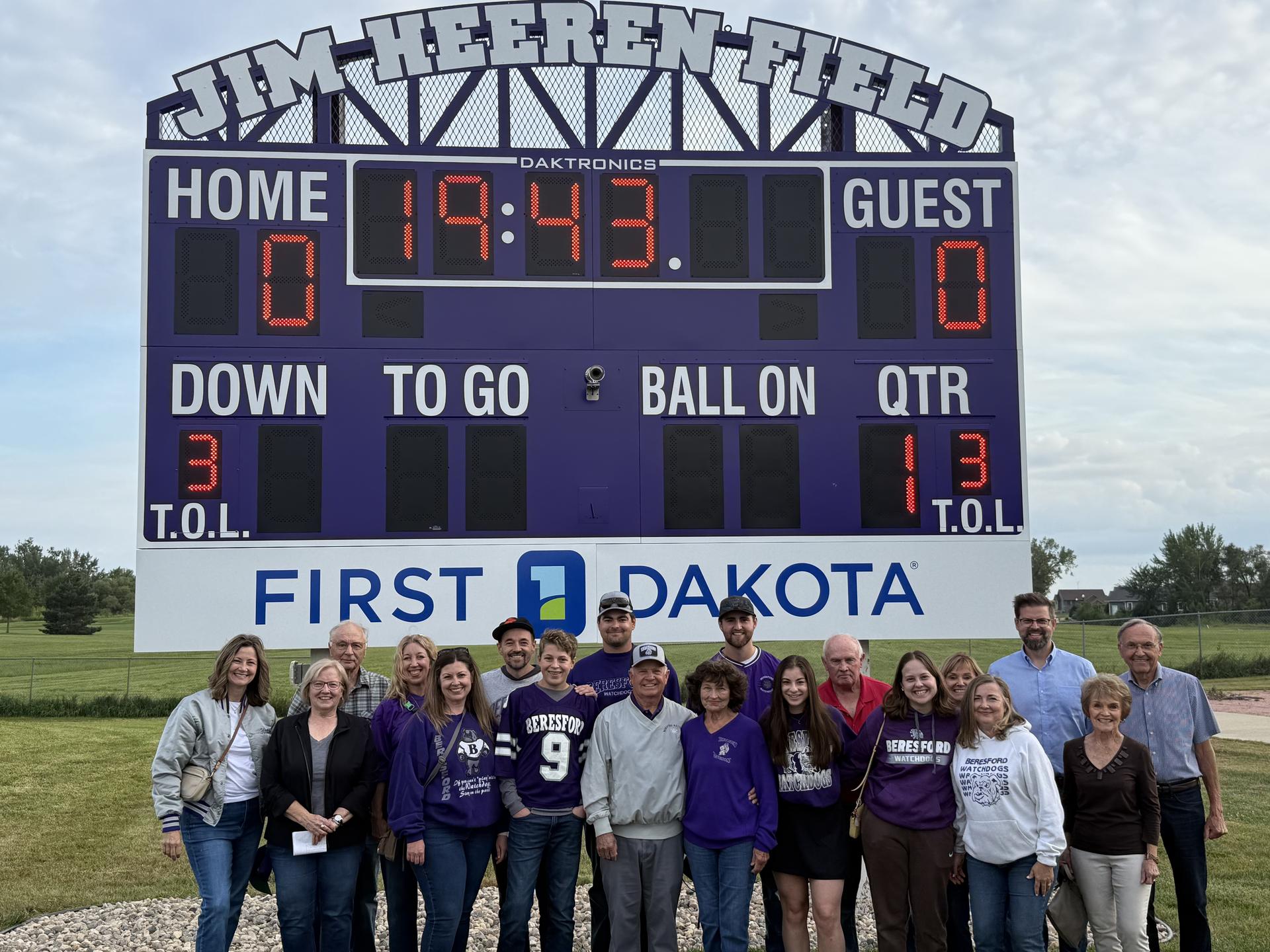 Mr. Jim Heeren was a science teacher, physical education teacher, head football coach, head wrestling coach, and Athletic Director during his 32-year career at Beresford Schools from 1967 to 1999. He spent 32 years coaching Watchdog football, 31 years as the head coach, where his teams compiled a career record of 177-114-2. The Watchdogs qualified for state playoffs 17 times in 20 years of playoff events. His team won 8 conference championships. In 1979 and 1980, his teams were State Champs based on sportswriters' and coaches' polls when there were only two classes of 11-man football, and in 1987, the Watchdogs won the State Football 11-B Championship, beating Flandreau 7-6. On August 29, 2025, the Beresford School District held the field dedication ceremony when the Watchdogs hosted the Parker Pheasants.