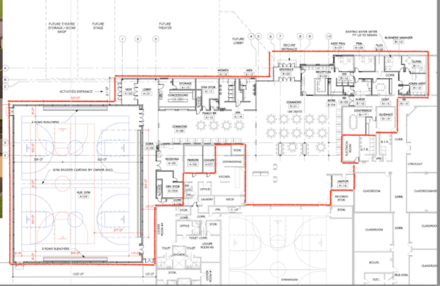A majority of the work will take place from March 2026 through November 2026. Work will start in the Multi-Purpose Room to begin renovations so the new activity entrance, concession stands, and restrooms are ready for the start of school in 2026.