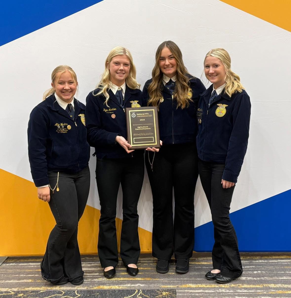 The Ag Communications team (2025) earned Silver at the National FFA Convention. Team members included: Allie Westra, Kylie Mockler, Capri Mullinix, and Carley Crist. |